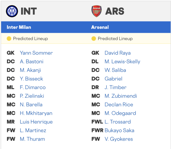 Expect a game of cat-and-mouse to take shape as Chivu looks to push the Inter wide-defenders into the attack and Arteta aims to exploit the space left in behind with the pace and agility of Saka.